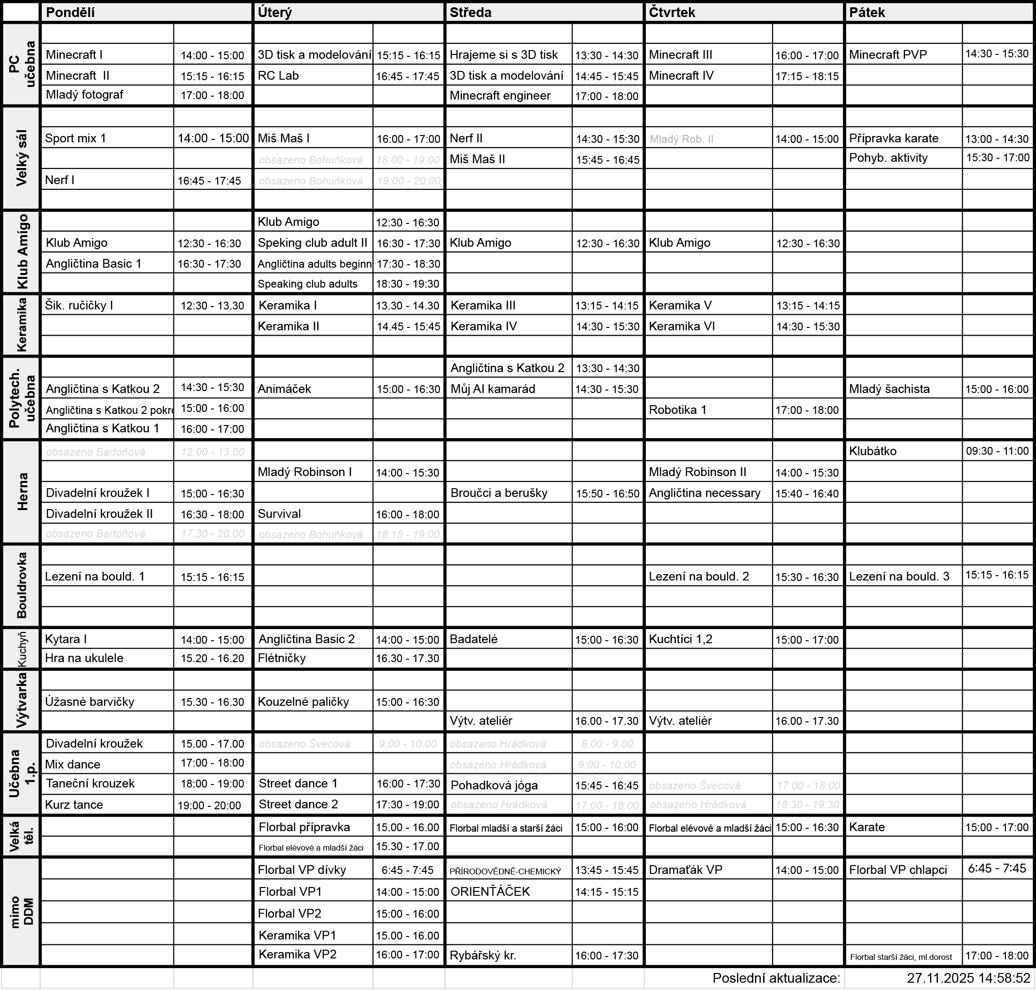 Kompletní rozvrh hodin